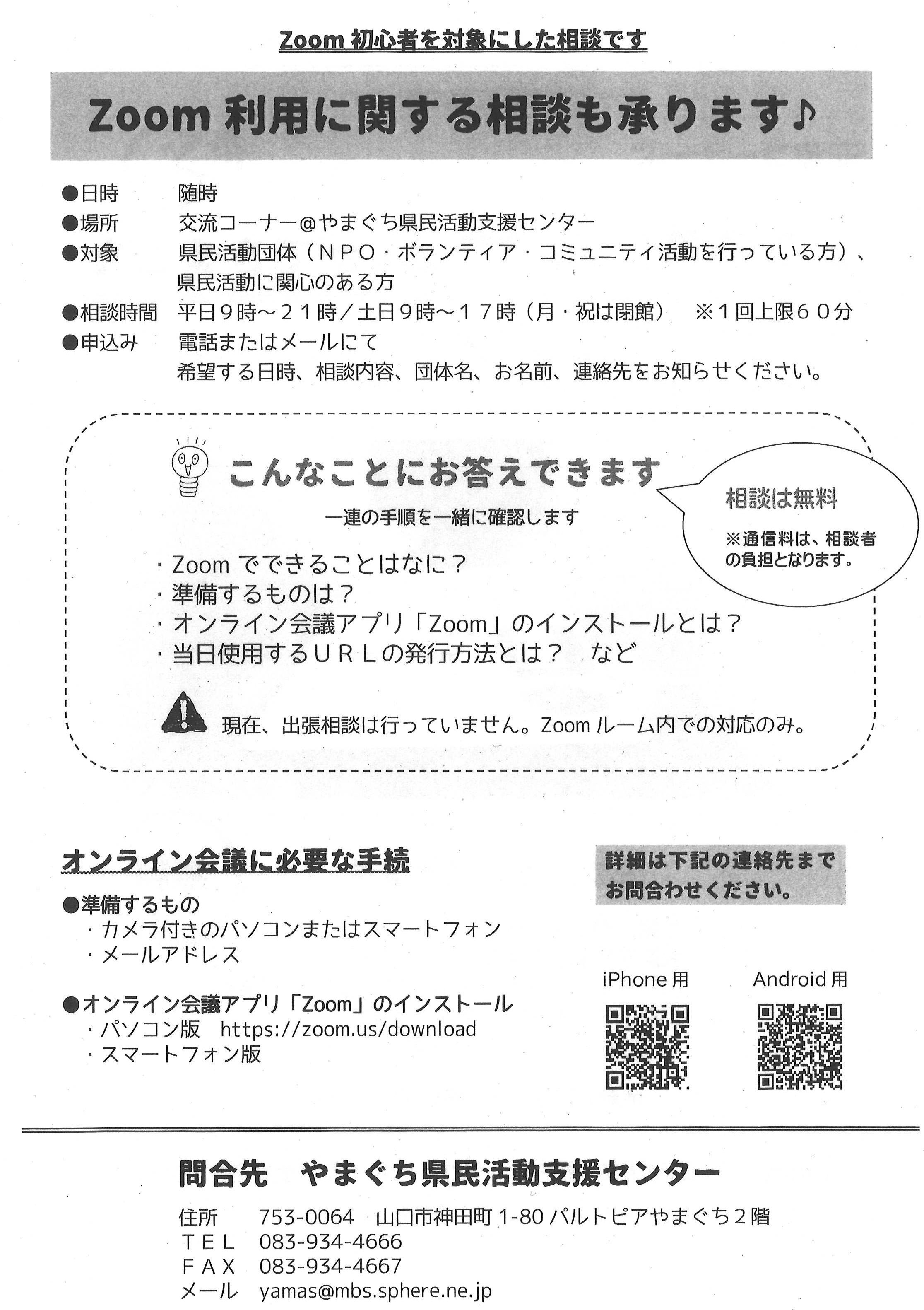 やまぐち県民活動支援センターが「Zoomルーム」を開設